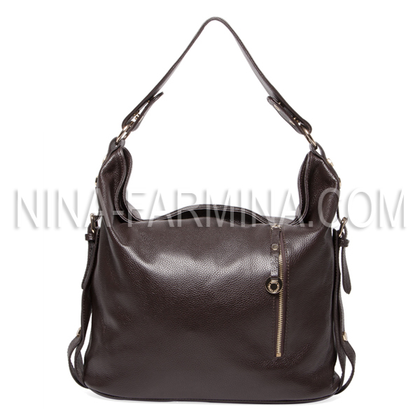 Внутри: Одно большое отделение. На передней стенке два кармана для мелочей. На задней стенке карман на молнии.