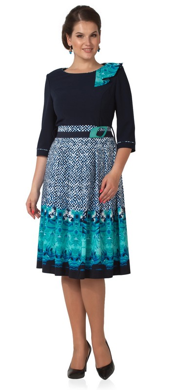 Платье на подкладке, отрезное по линии талии, юбка с односторонними складками. Длина по среднему шву спинки 108-110 см. в зависимости от размера (доп. погр.1-2 см. ). Пояс с декоративной пряжкой. В среднем шве спинки потайная молния. Ткань: плательно-костюмная.